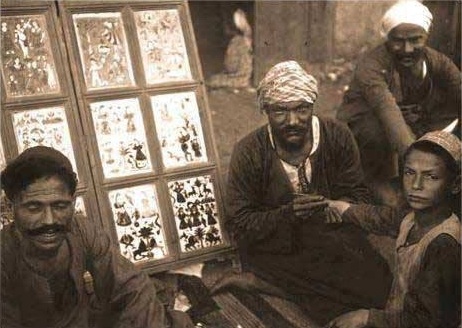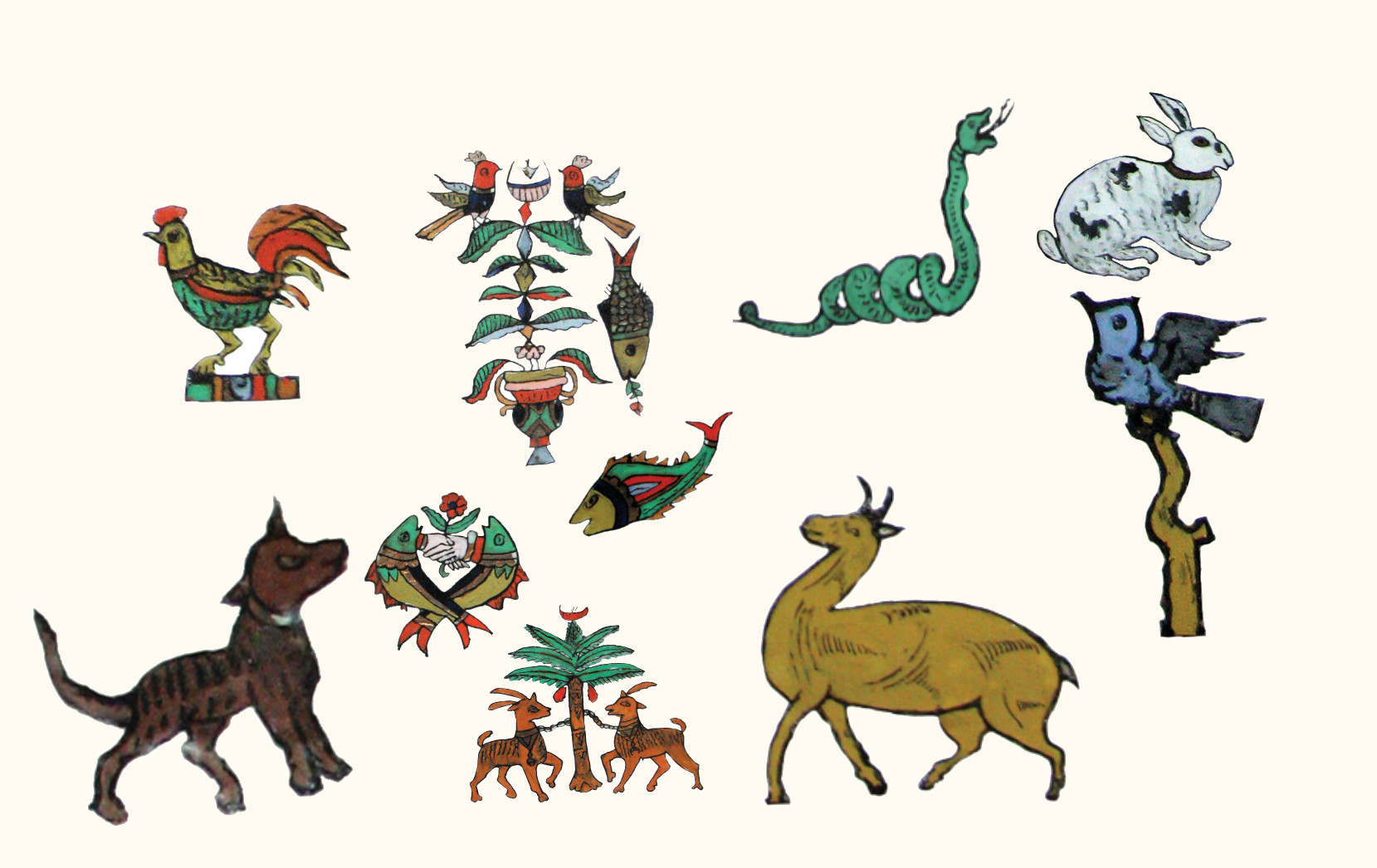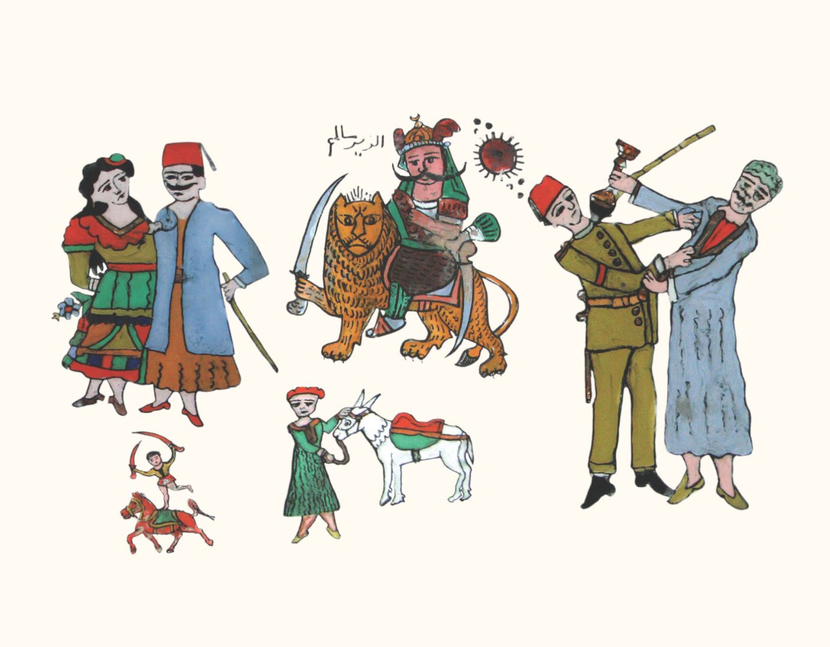 Thanks to the collections of tattoo artists, painted on glass and preserved since the 1930s at the Museum of the Geographical Society (Cairo) and at the Museum of Branly Quai (Paris), we can draw up an inventory of Egyptian tattoos: geometric shapes both ornamental and medical, religious themes, symbolic bestiaries, figures of men and women, and be struck by the greatly evocative force of such symbols – always with multiple meanings, always ambivalent. This multicoloured world of birds, fish, lions, snakes, crosses and mosques, epic knights, women brandishing sabers or garlands of flowers, opens itself up to the imagination and collective representations. Multiple sources, meanwhile, lend themselves to the analysis and understanding of these images: miniatures and chromolithographs, bestiaries and cosmogonies, fables and proverbs, literary motifs, legends of saints, knowledge of magic and divination, religious beliefs.